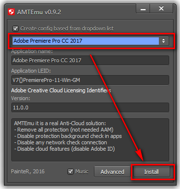 9.第一个选项卡选择Adobe Premiere Pro CC 2017,点击“Install”