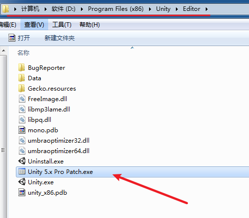 9.打开安装文件夹,复制“Unity 5.x Pro Patch”文件