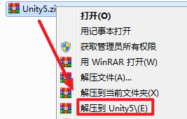 1.选中下载的安装包,然后右键选择“解压到 Unity 5.0″