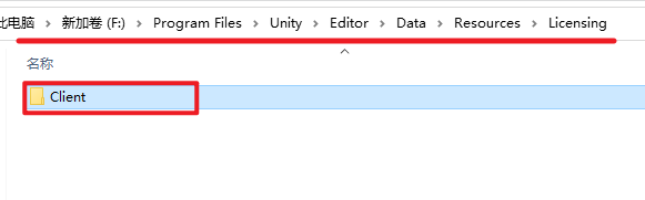 “C:Program FilesUnityEditorDataResourcesLicensing”,删除该文件夹里面的“Client”文件夹