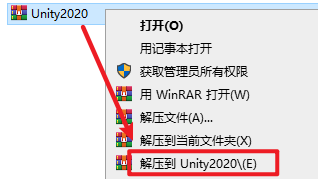 1.选中下载的安装包,然后右键选择“解压到Unity3D 2020 64位”
