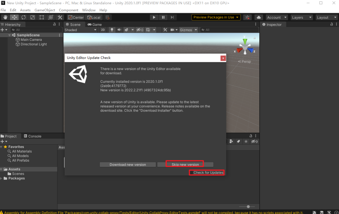 23.取消勾选“检查更新”,然后点击“skip new version”