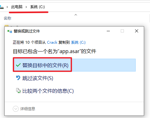 17.选择“替换目标中的文件”