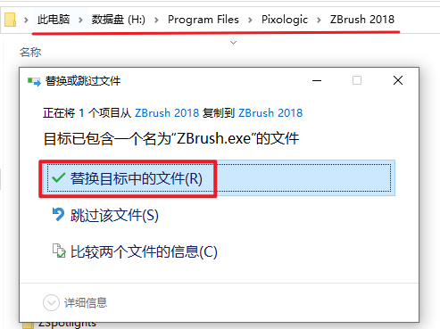 13.粘贴刚才复制的文件到该路径下,选择“替换目标中的文件”