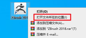 12.选中桌面上的”ZBrush 2018“软件图标,鼠标右键选择“打开文件所在位置”