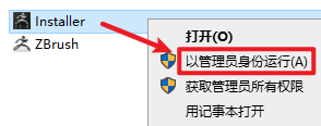 2.打开解压出的文件夹,鼠标选中“Installer”安装程序,右键选择“以管理员身份运行”