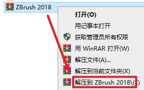 1.选中下载好的的安装包,然后鼠标右键选择“解压到 ZBrush 2018″