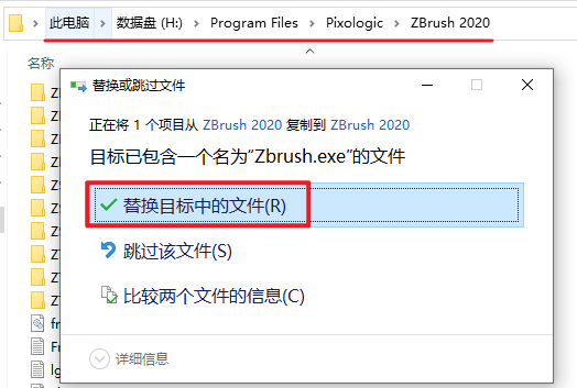 11.返回之前安装文件夹,找到并复制“ZBrush”文件
