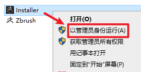 2.打开解压出的文件夹,右键选中“Installer”安装程序,右键选择“以管理员身份运行”