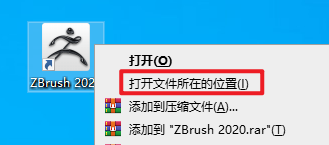 12.在桌面上选中”ZBrush 2020“软件图标,鼠标右键选择“打开文件所在位置”