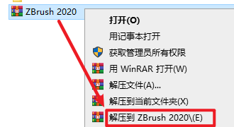 1.选中下载的安装包,然后右键选择“解压到 ZBrush 2020″