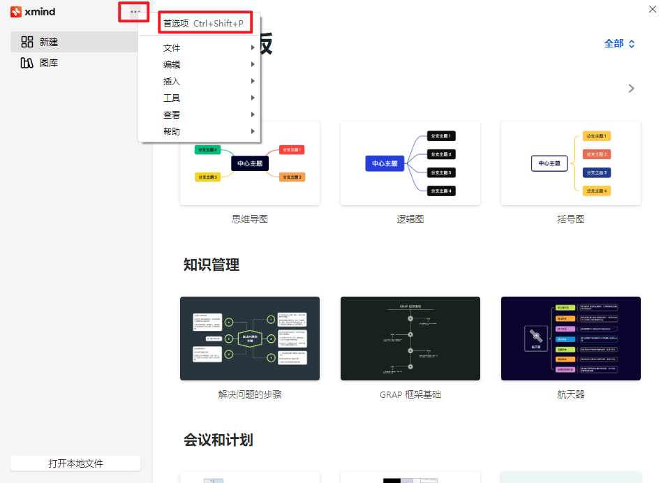13.软件打开后,在新建界面点击左上角【…】打开首选项