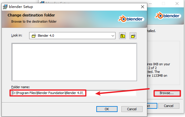 5.点击【Browse】,选择软件的安装路径,本例安装到D盘,点击OK。