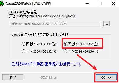 14.选择安装的对应版本,这里我们选择【图板2024 X64】,然后点击GO。