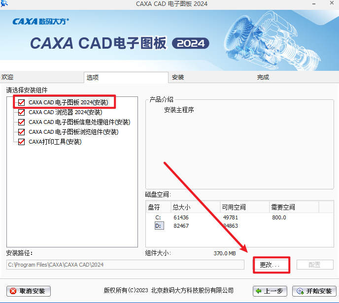 7.选中【CAXA CAD电子图板2024(安装)】,点击【更改】