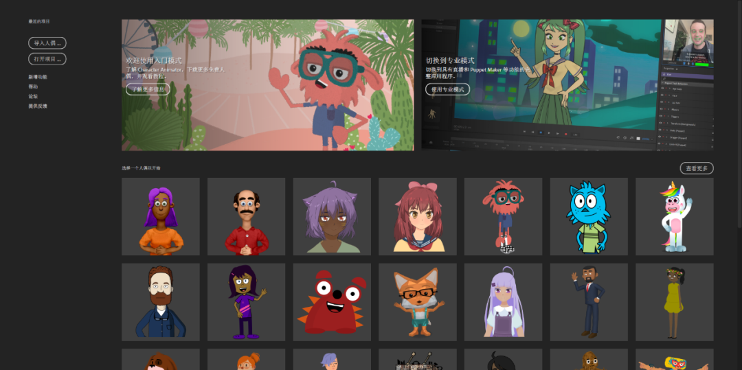 Adobe Character Animator 是一款直观的2D角色动画应用程序,主要功能是“人偶和模仿”,与After Efect相似。Character 的学习门槛较低,其核心的实时面部追踪绑定和语音识别。它可以通过录制演示动作,或者使用摄像头捕捉,麦克风记录等形式来直观的创造角色的动画。