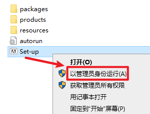 2.找到并选中Set-up,右键选择“以管理员身份运行”