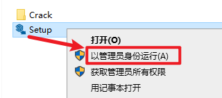 2.在解压出的文件夹中找到并选中Setup,右键选择“以管理员身份运行”