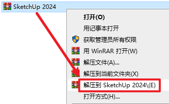 1.选中下载好的安装包,右键选择解压到“SketchUp 2024”