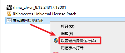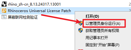 7.返回安装文件夹,选中“Rhinoceros Universal License Patch.exe”右键选择“以管理员身份运行”