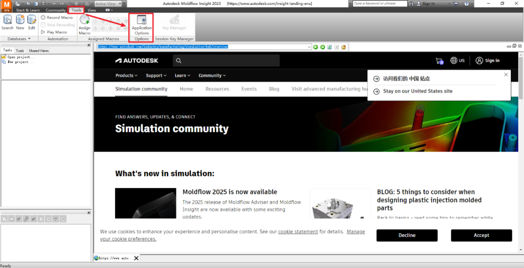 15.若有提示,输入【localhost】点击完成,点击软件菜单栏中的【Tools】,点击【Application Options】。