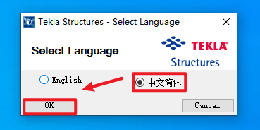 22.打开桌面Tekla 19软件,选择语言,点击OK。