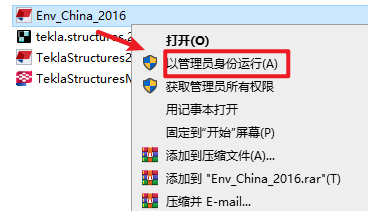 16.返回安装文件夹,选中“Env_China_2016”文件,右键选择“以管理员身份运行”