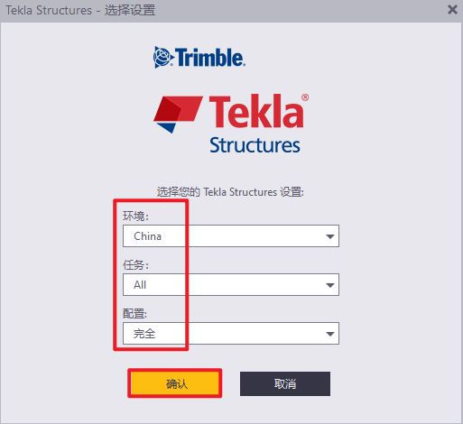 31.设置环境“China“,任务“All“,配置“完全“, 点击“确认“