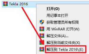 1.选中下载的安装包,然后右键选择解压到“Tekla 2016”