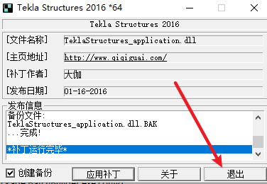 28.提示“补丁运行完毕“即激活成功,点击“退出“