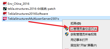 12.返回安装文件夹,选中“TeklaStructuresMultiuserServer2301s”文件,右键选择“以管理员身份运行”