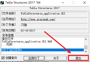 23.提示“补丁运行完毕“即激活成功,点击“退出“