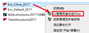 12.返回安装文件夹,选中“Env_China_2017”文件,右键选择“以管理员身份运行”