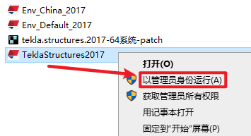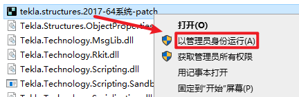 21.选中“tekla.structures.2017-64系统-patch”可执行文件,右键选择“以管理员身份运行”
