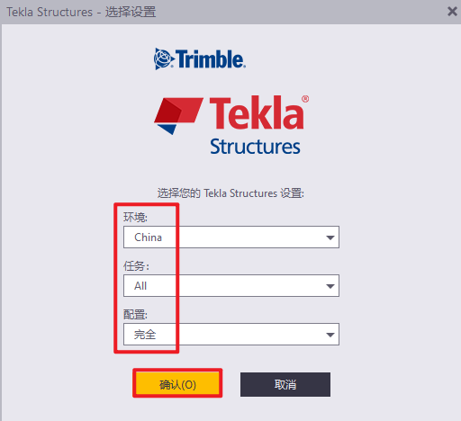 26.设置环境“China“,任务“All“,配置“完全“, 点击“确认“