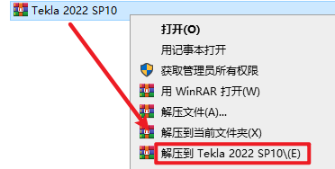 1.选中下载的安装包,右键选择解压到“Tekla Structures 2022”