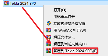 1.选中下载的压缩包,然后右键选择解压到“Tekla Structures 2024 SP0”