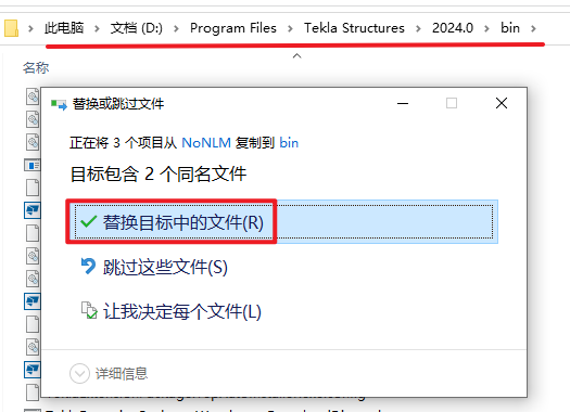 21.粘贴复制的文件到该路径下,选择“替换目标中的文件”