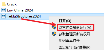 2.打开解压的文件夹,选中“TeklaStructures2024”右键选择“以管理员身份运行”