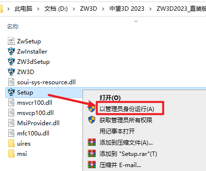 1.选中下载的安装包,右键选择解压到“ZW3D2023_直装版”