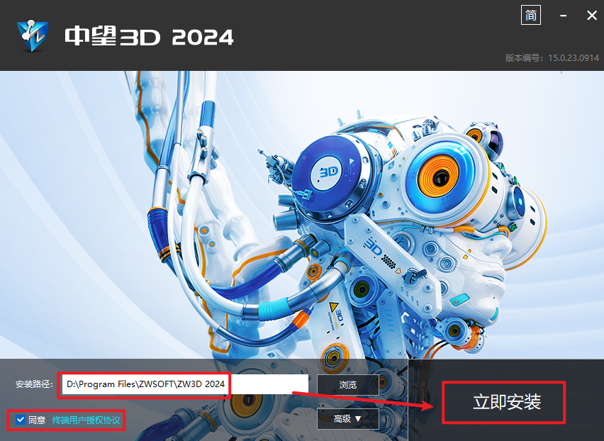 3.选择软件安装路径,安装路径不要出现中文,勾选“同意…”,点击”立即安装”