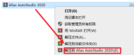 1.选中下载的安装包,然后鼠标右键选择解压到“Alias AutoStudio 2020”
