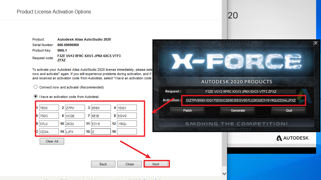 17.然后将“Activation”复制粘贴到“I have an activation code from Autodesk我具有Autodesk提供的激活”对应框内,最后点击“Next”
