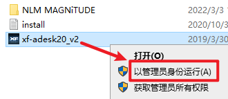 15.返回之前解压的“Alias AutoStudio 2020”文件夹,双击打开“注册机”文件夹,找到并选中“xf-adesk20”,鼠标右键选择“以管理员身份运行”
