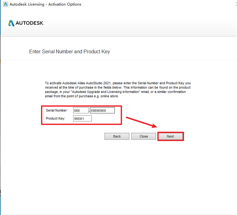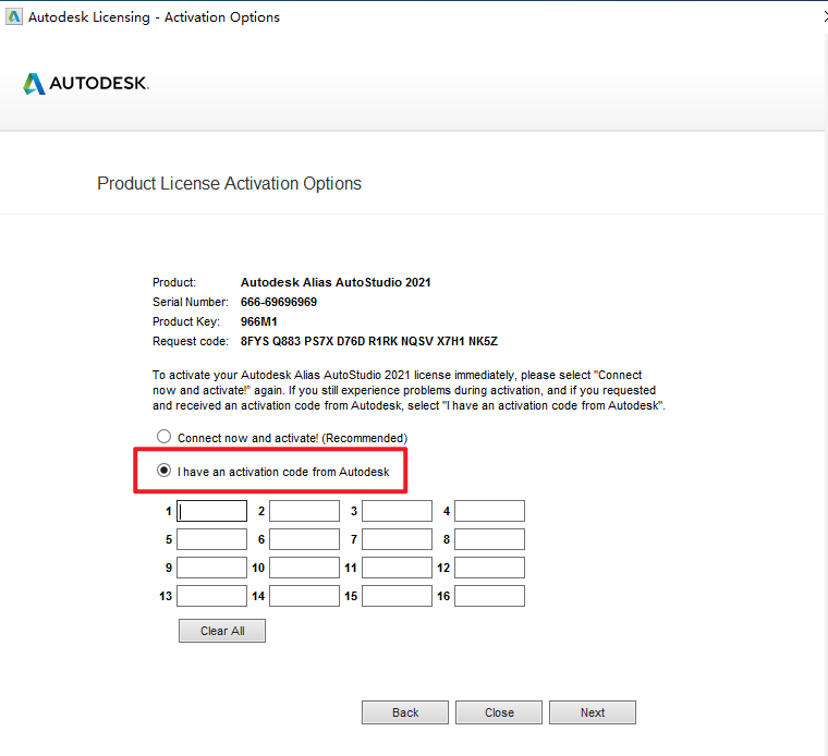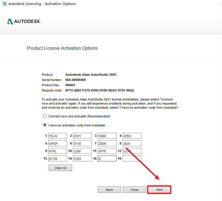 17.然后将“Activation”复制粘贴到“I have an activation code from Autodesk我具有Autodesk提供的激活”对应框内