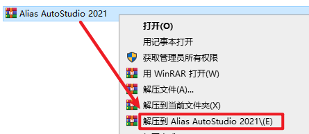 1.选中下载的安装包,然后鼠标右键选择解压到“Alias AutoStudio 2021”