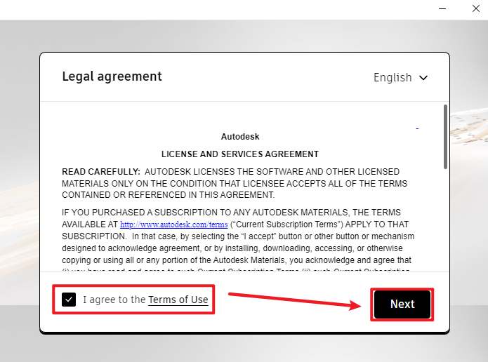 4.勾选“I agree to the Terms of Use”,点击“Next”