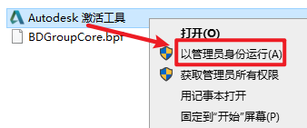9.返回之前解压的“Alias 2022”文件夹,双击打开“Autodesk批量激活工具_1.2.2.9”文件夹,选中“Autodesk 激活工具.exe”文件,鼠标右键选择“以管理员身份运行”