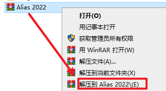 1.选中下载的安装包,然后鼠标右键选择解压到“Alias 2022”