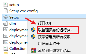 3.在打开的文件夹,找到并选中“Setup”安装程序,右键选择“以管理员身份运行”